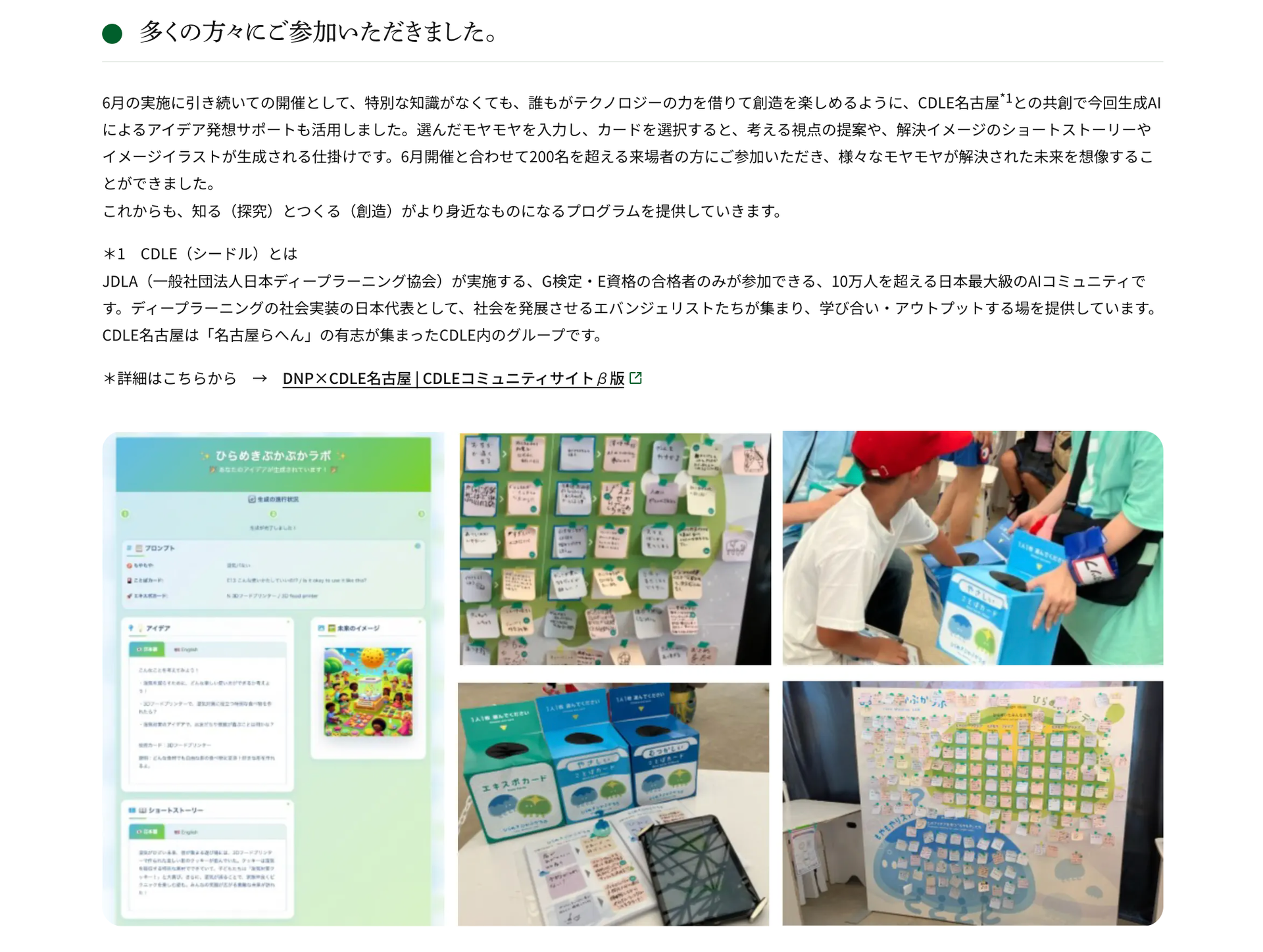 CDLE名古屋は「TEAM EXPO 2025 / 共創チャレンジ」への参加を通じて、「ひらめきぷかぷかラボ」へ生成AIの技術支援を行いました。