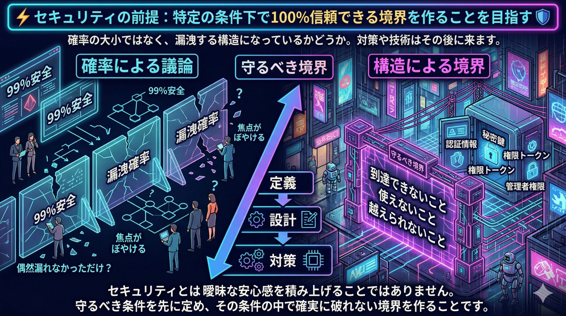 ⚡セキュリティの前提:特定の条件下で100%信頼できる境界を作ることを目指す🛡