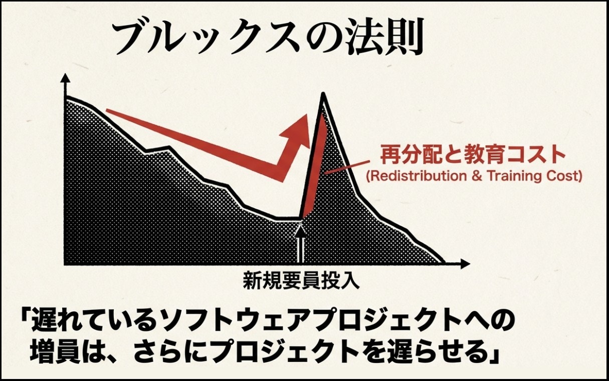 彼らが現場に到着して目にするのは、一ヶ月の労働時間が三百時間を超え、オフィスに泊まり込むことが常態化したエンジニアたちの、生気を失った顔です 。しかし、投入された人員がすぐに戦力になるわけではありません。既存の疲弊したメンバーが、新しく来た人間に仕様を説明するために時間を割かなければならず、結果として進捗がさらに遅れるという「ブルックスの法則」を体現するような悪循環が始まります 。