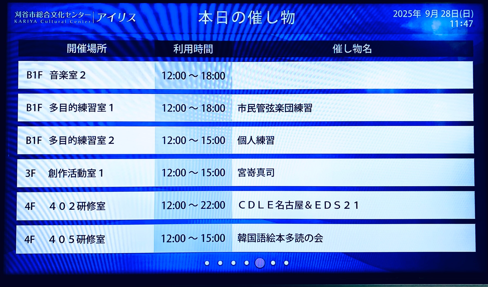 いつもはイベント会場は、名古屋市の施設で探してしまいますが…刈谷市とはいえ名古屋駅から特別快速で2駅ぐらいで着いてしまうので、名古屋からの交通の便も良いです!