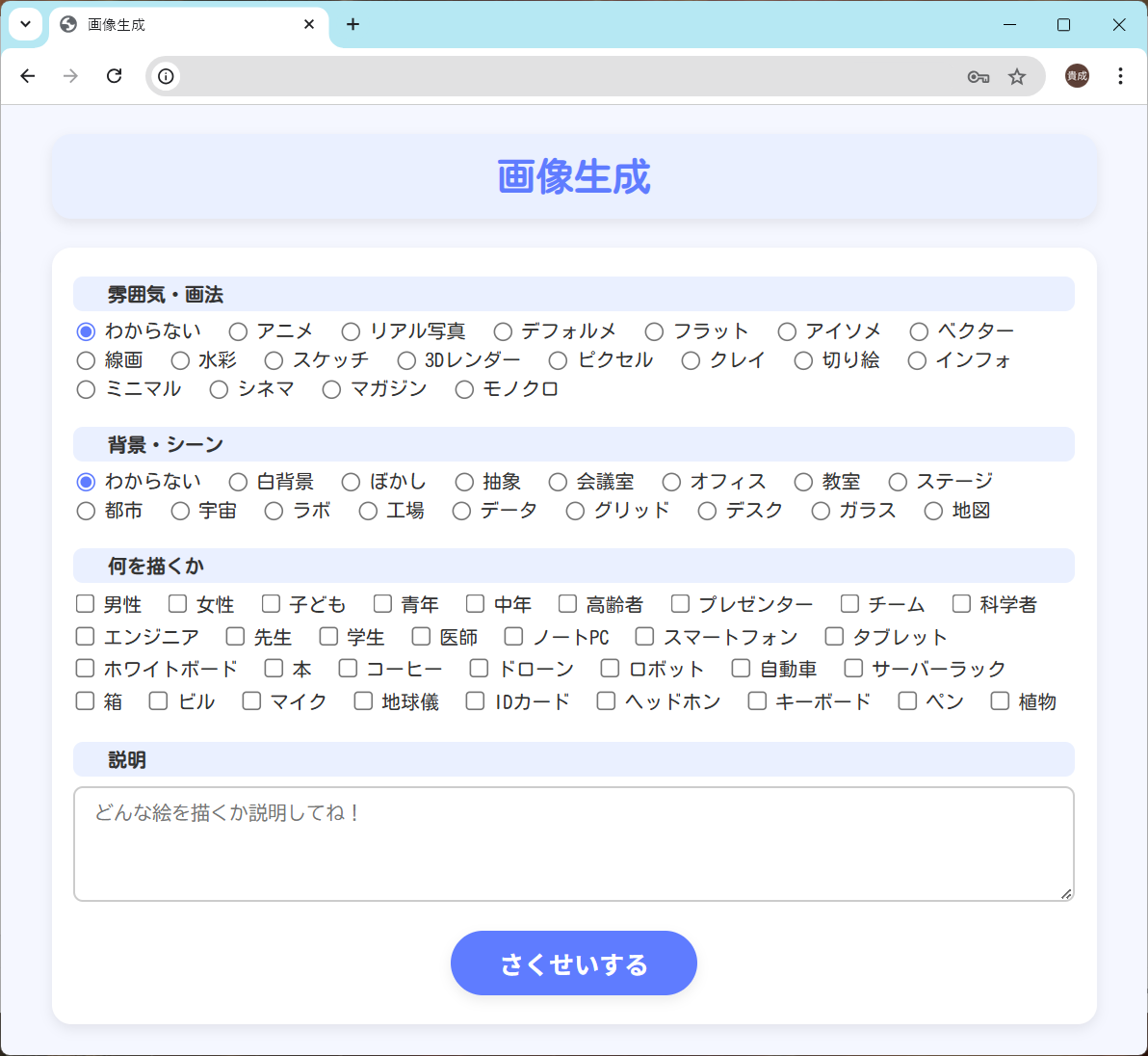 Googleスライドを利用して作成する「アイデアシート」には画像も貼りたいと思いますので、画像生成を行えるツールを用意しました!