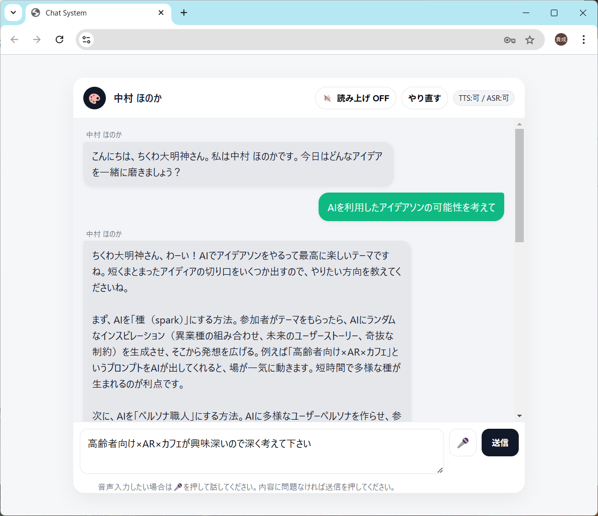 音声入力や音声出力の機能も持たせたのですが、イベントで実際に行ってみると、音声入力よりキー入力、音声出力より画面の文字を見る方が圧倒的に楽でした。