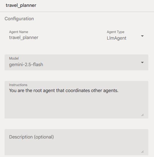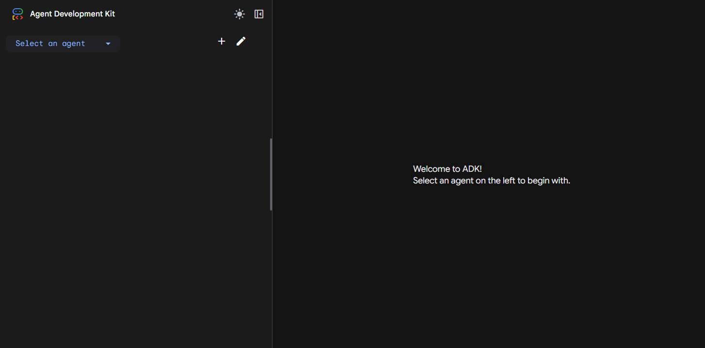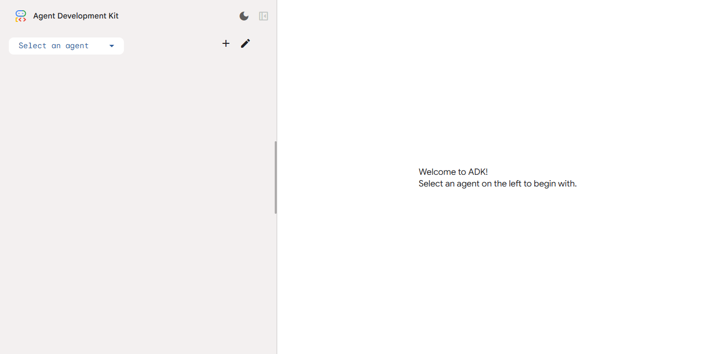 これはまだVisual Builderではなくて、ADKのDev UI(開発用UI)というものです。ADKはもともとはPythonなどでコーディングして作るのが基本で、開発中のコードの検証に使うための画面です。