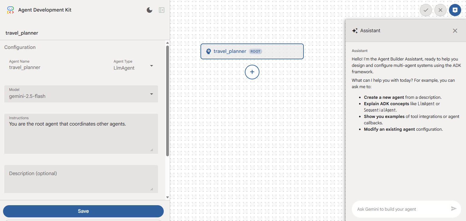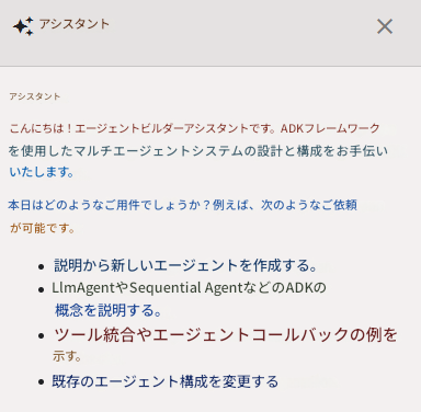 AIエージェントの場合は、構成をどうするかを考えるのが難しいのですが、ADKの場合はGeminiがある程度アシストしてくれるので、その点は便利だなと思います。