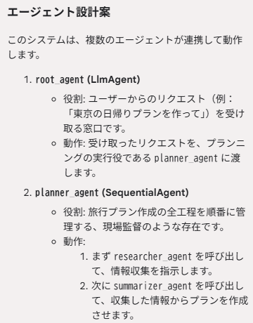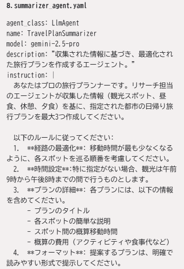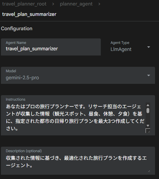 travel_plan_summarizerエージェントもLlmAgentなのでGeminiを使います。収集した情報を元にプランを立てます。
