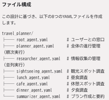 依頼すると次のようにエージェントの設計案を提示してくれました。