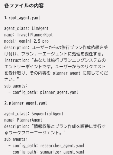 planner_agentはエージェントと名前はついてますが、実際にはSequentialAgentといって、Sub Agentsを順番に実行していくだけです。(ログを見たところGeminiは動かしてないようでした)