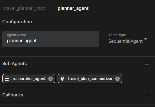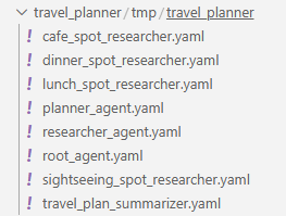 planner_agentがresearcher_agentとtravel_plan_summarizerを動かしてます。