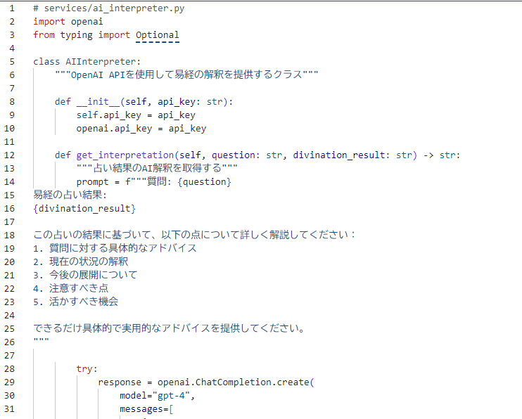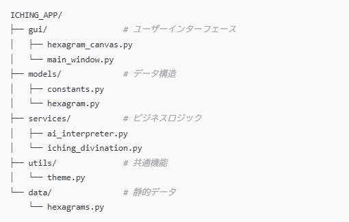 ビジネスロジック(services/):占いロジックやAIによる解釈を担当。