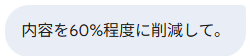 このような場合、なんと「内容を60%程度に削減して」とお願いすれば、それっぽくやってくれます。さすがマルチモーダルに強いGemini。