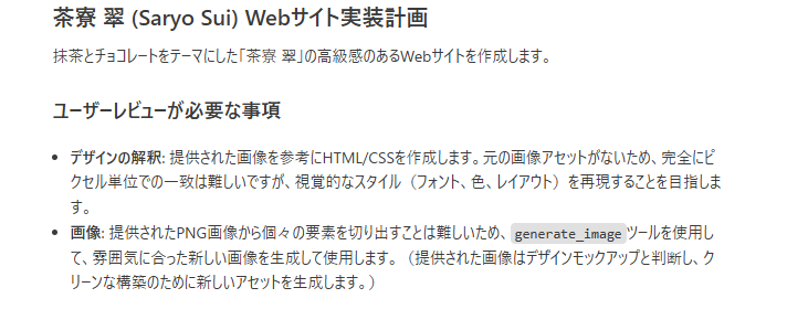 画像の切り出しは難しいので生成するといってますね。ここがAntigravityの良いところで、Nano Bananaを使って画像も生成してくれるのです。