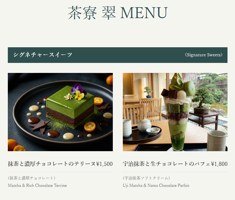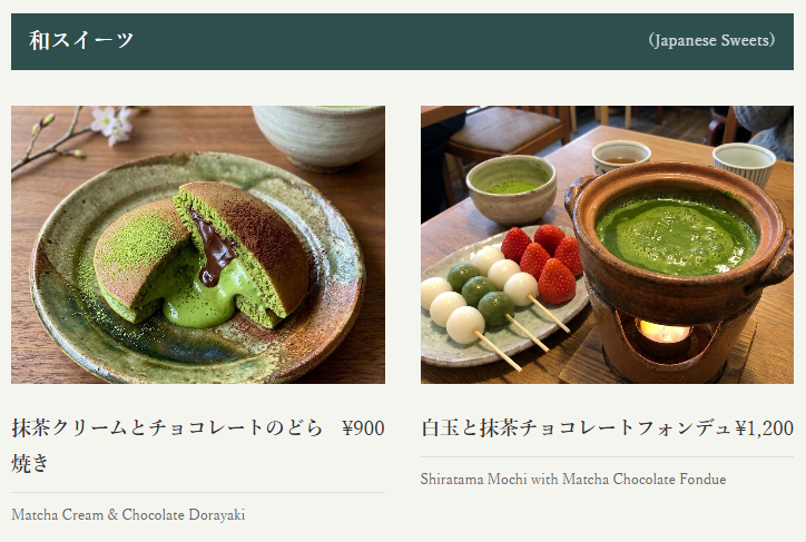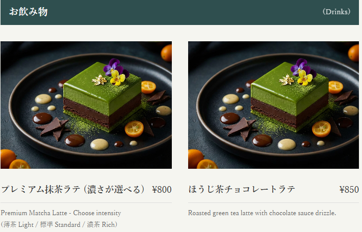 インバウンド向けと記載したからかNano Banana Proはインバウンド向け英語Webページの内容を参照して画像を作り出したようです。参照先を見てみると、確かに似たようなメニューは存在するのですが、まったく同じものはなし。抹茶チョコレートフォンデュに至ってはそのようなメニューは存在せず。事前知識と組み合わせて作りだしたのでしょうか。不思議ですね。