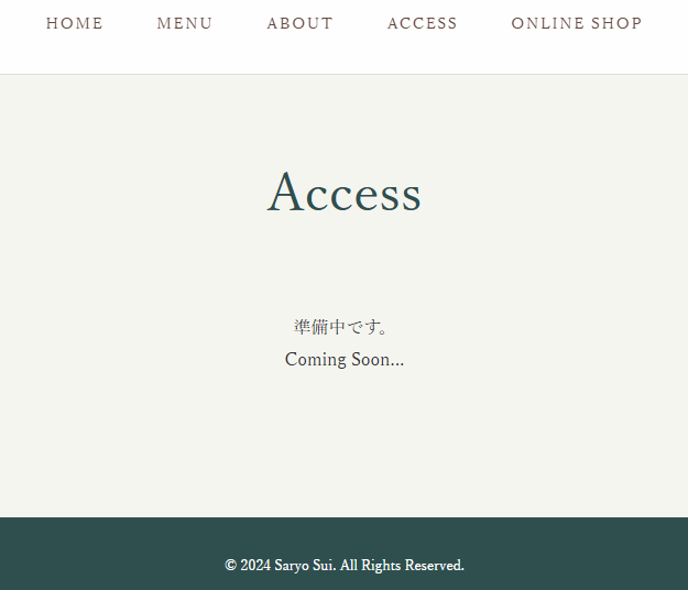 ACCESSとOnline Shopはダミーでとお願いしておいたら「準備中です」とフェードインで出してくる心憎い演出。Gemini本当に素晴らしい・・・