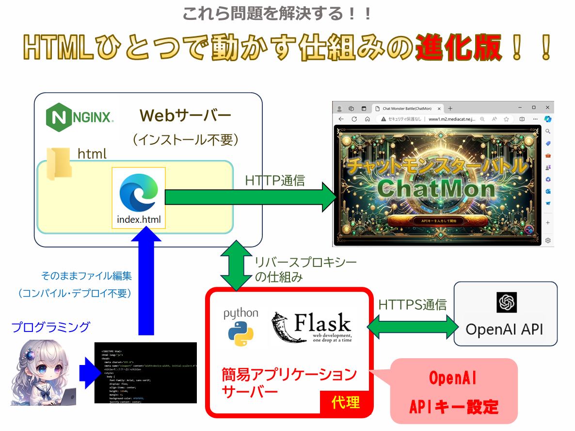OpenAIのAPIを利用したWEBアプリケーションで、ご存じの方もいるかと思いますが…チャットモンスターバトル(チャトモン)というCDLE名古屋が広く展開しているコンテンツがあります。