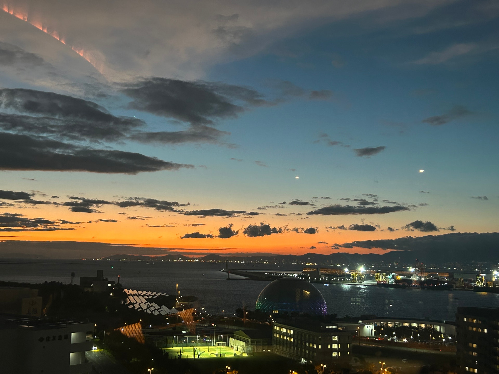ATCにて、お打ち合わせの後、テナント向けのイベントにご招待いただけました。万博開催地の夢洲の南の人工島、咲洲から、万博会場を間近に望む風景です。