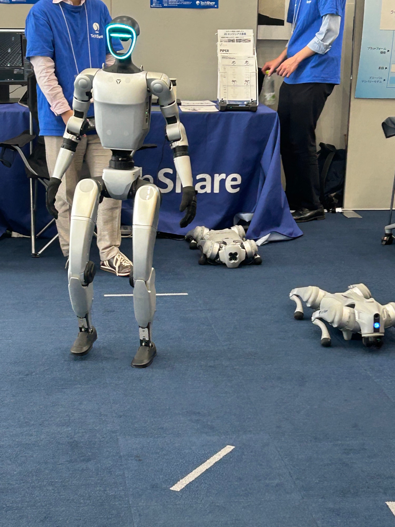 こちらは会場外の展示ブースにて、話題のヒューマノイド研究で世界の先端を走るTech Share様とゆっくりお話ができました。昨今、巷では開発競争上の戦略なのか、バク宙するロボットなどフェイク動画も多い。実際に目にしたものだけが信用でき、素晴らしいデモも拝見できました。