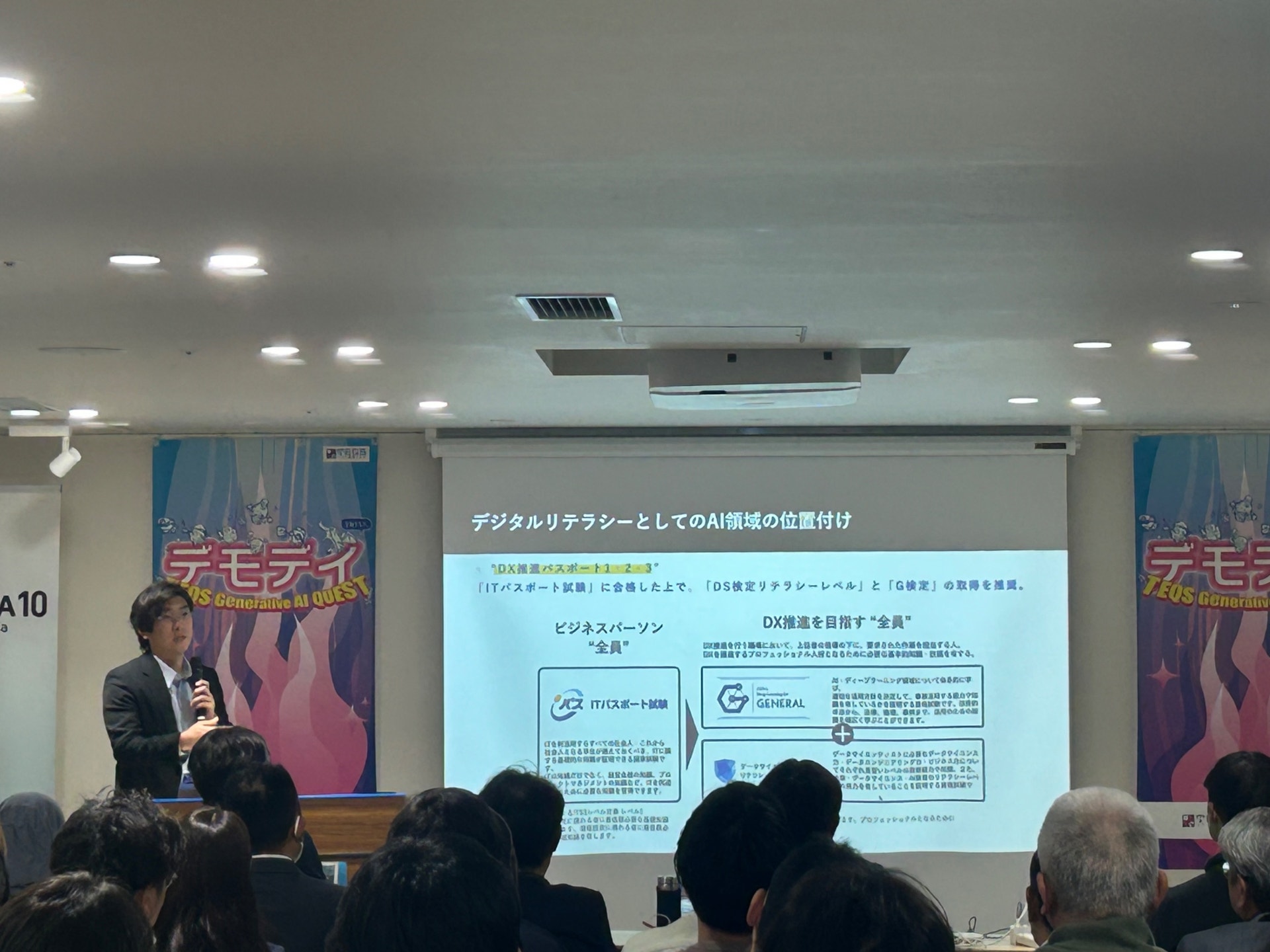 今年、新たにメンターにお加わりいただいたJDLA理事の南野さんには、最終デモデイでもプレゼンをいただきました。今回は参加チーム数も増え、メンターのご負荷も大きかったのですが、ご出身地である大阪にはご縁深いこともあり、多大なるお力添えを賜りました。