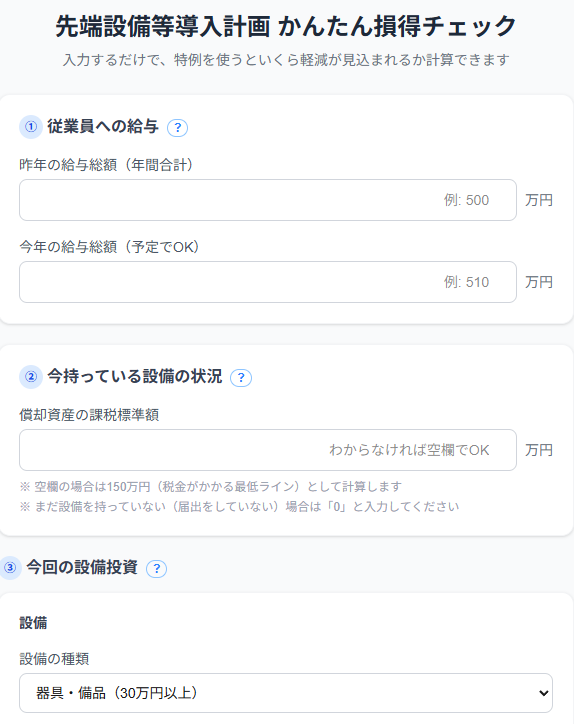 本当に必要なのは、もしこの機械を今年買ったら、税制はいくら得して、それは賃上げ要件を満たす価値があるのか?を直感的に、かつ瞬時に可視化できる環境でした。