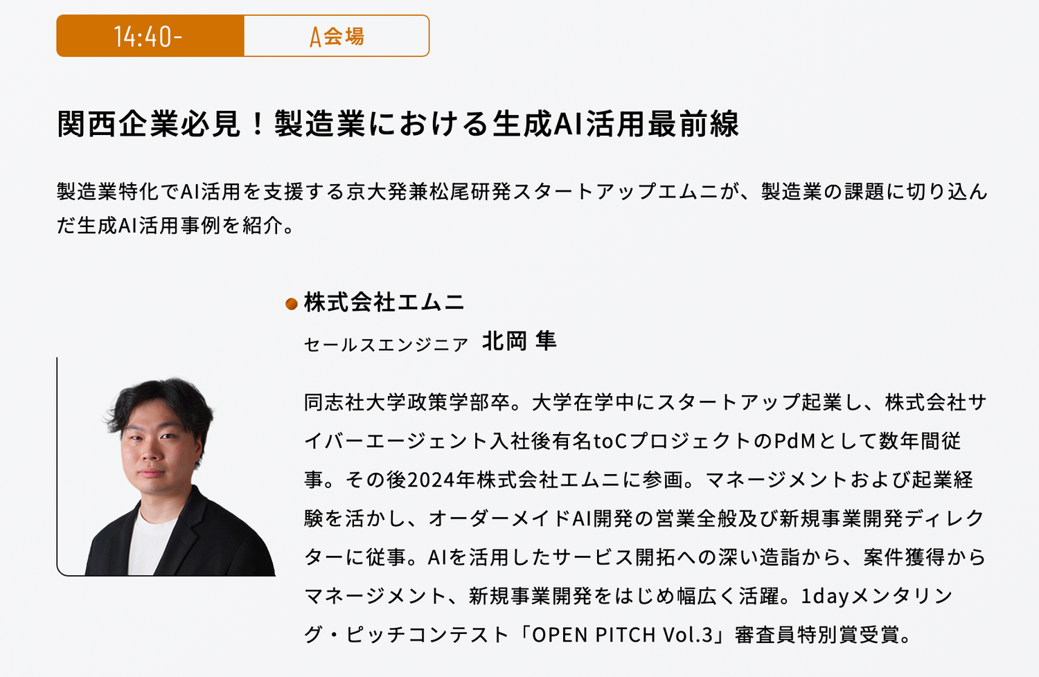 エムニさんは京都の松尾研ベンチャーで急成長中です。来期にはまたイベントをご一緒できればと計画中です。