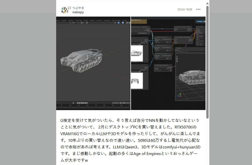 となって、nabepyさんが紹介しているComfyUI+hunyuan3Dにチャレンジしてみました!