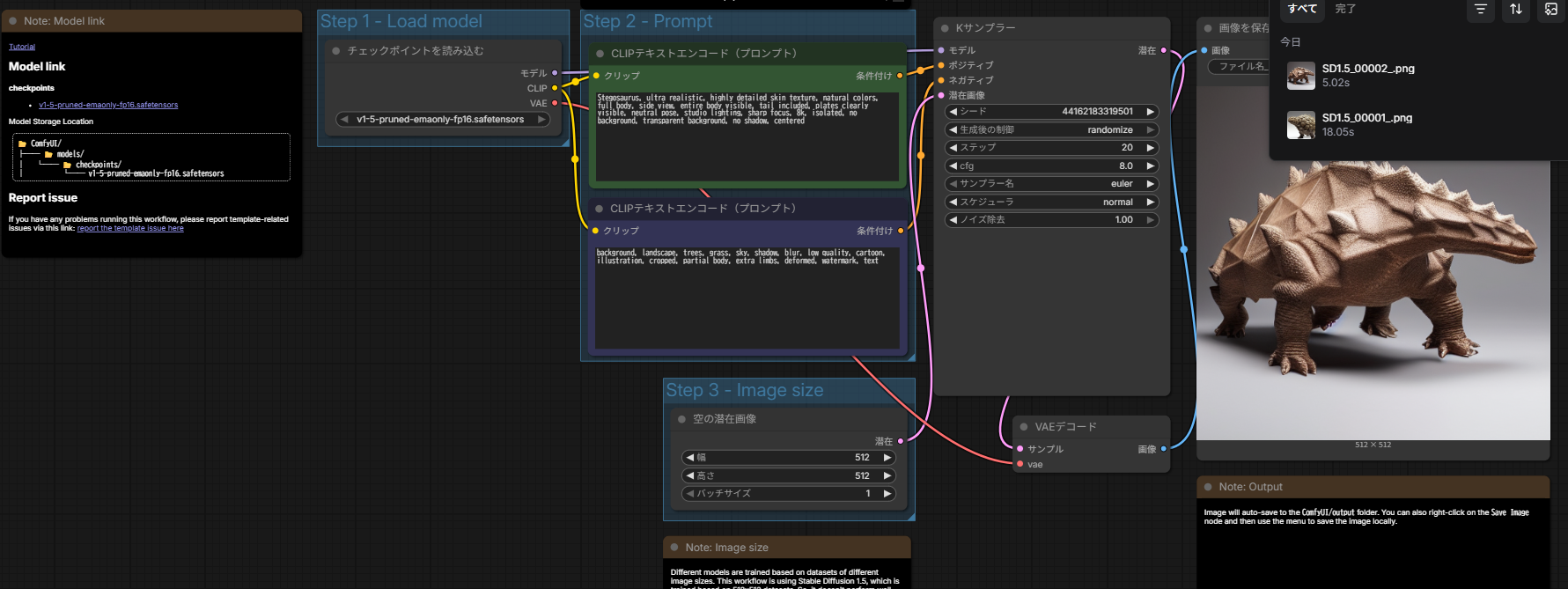 ビギナー向けのワークフローで画像を作ってみました。
