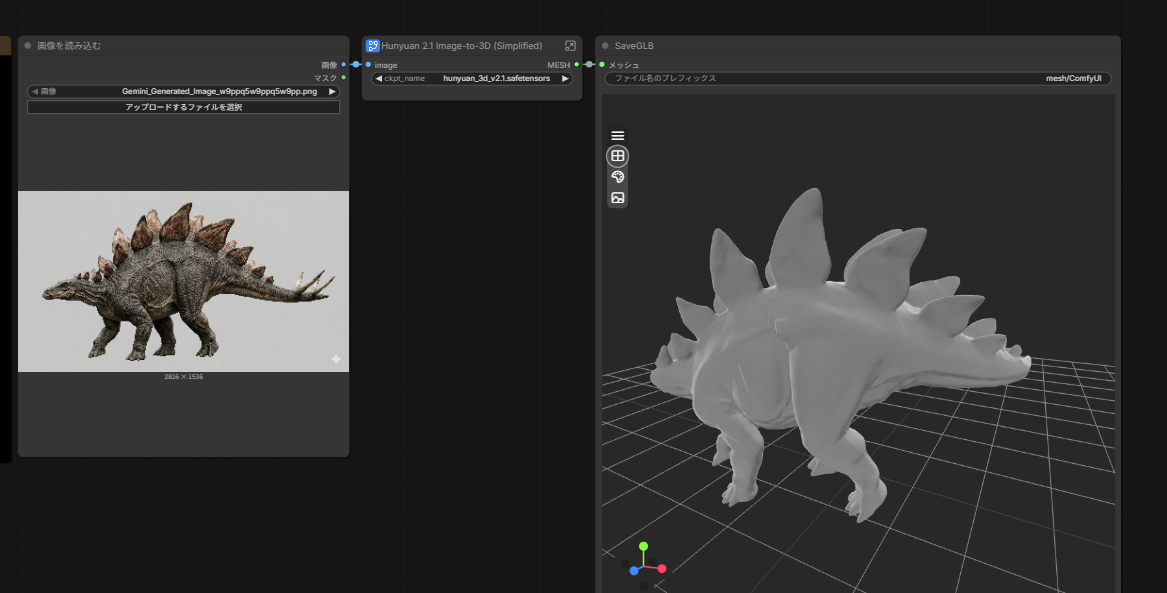 で、入力はNanobanana2に作ってもらったステゴサウルスです。