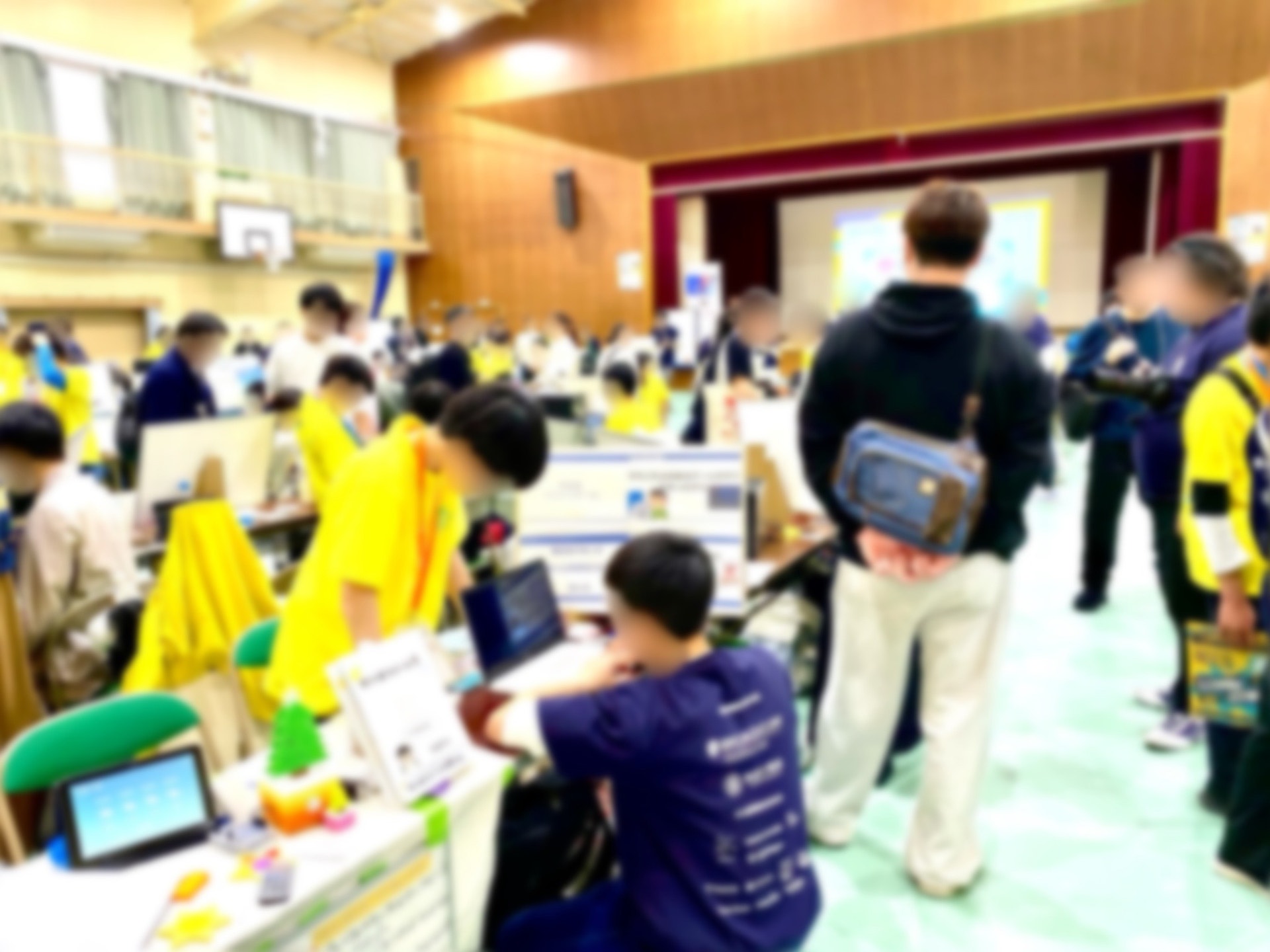 また、大スクリーンに映し出されることで、他のワークショップを待っている子どもたちも興味深そうに観戦しており、遊んでいる子どもたち以外も楽しめていた様子でした。