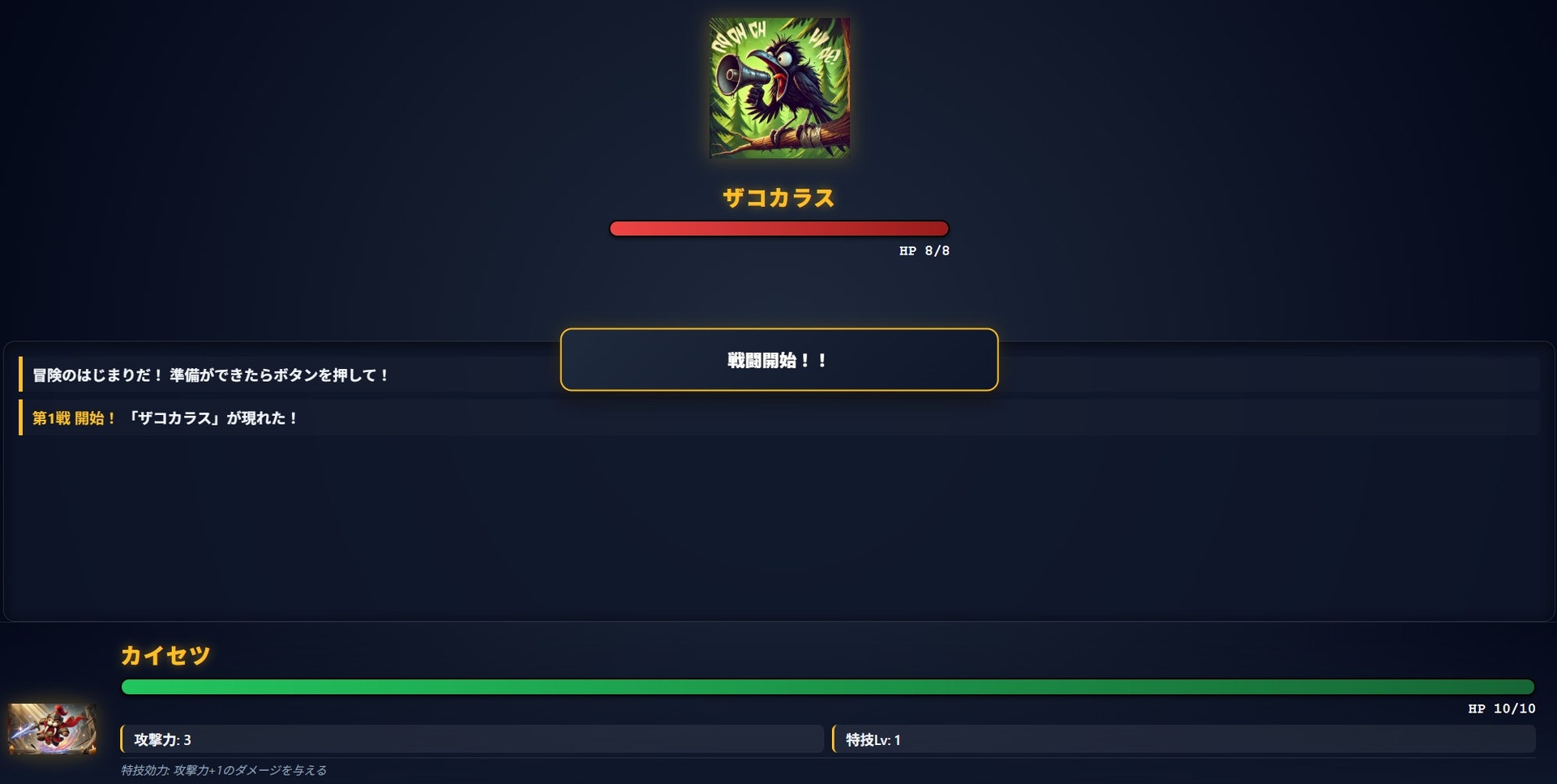"冒険をはじめる"ボタンをクリックすると、ゲームが始まります。