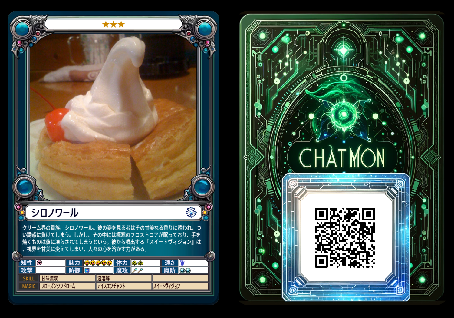 例えば、画像をモンスターではなく、食べ物として「栄養」「美味しさ」を元に能力を決めたらどうなるかを試してみましょう!!