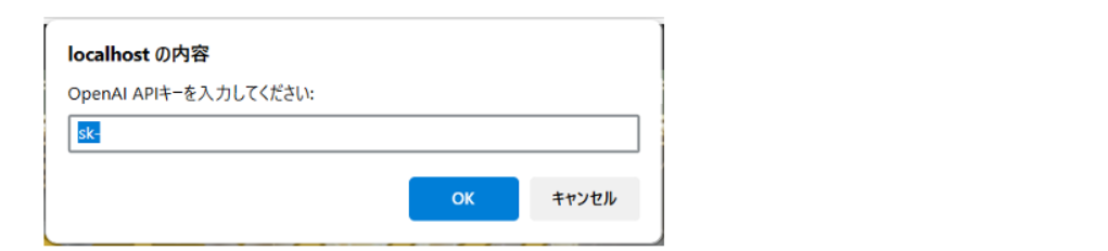 OpenAIのAPIキーを取得して入力してOKボタンを押してください