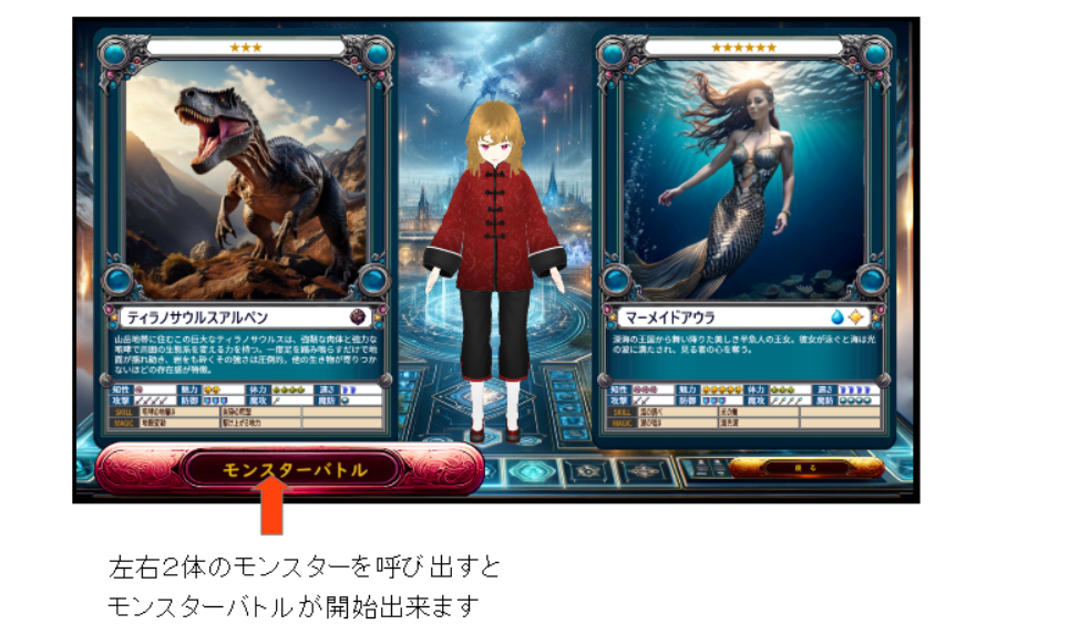 ## 闘いは弱そうに見えるモンスターが打たれ続けながら、最終的に弱ければ弱いほどその特殊能力が発揮され最終的に弱そうなモンスターが勝ちやすくしてください。