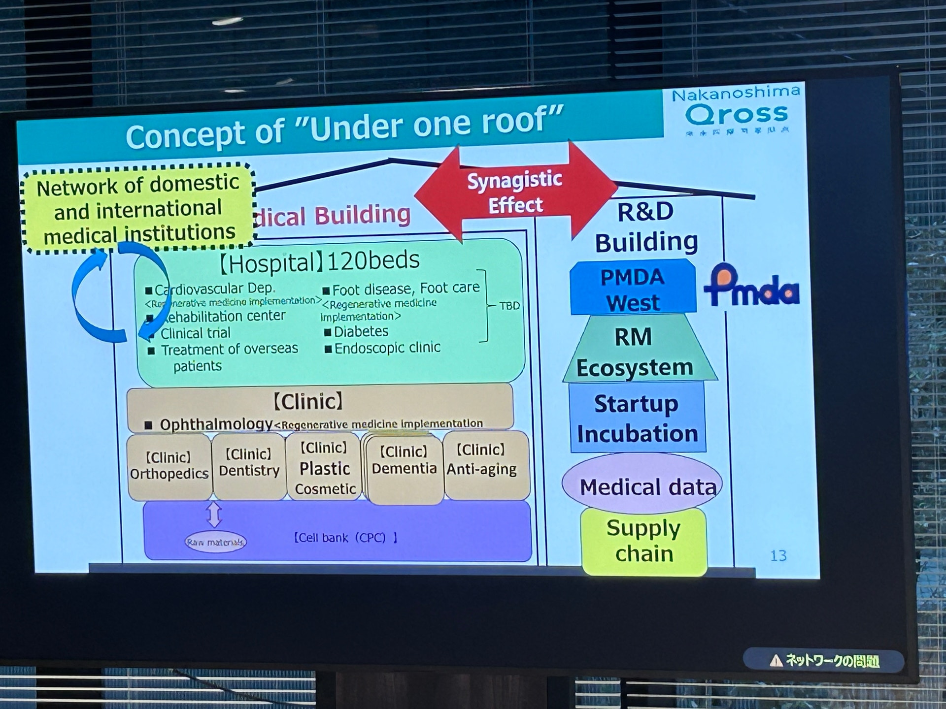 医療機関と企業がワンフロアに集積: 施設内に病院やクリニック、医薬品メーカー、医療機器メーカーなどが共存しています。